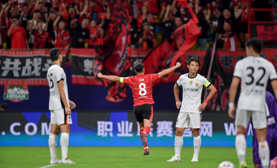 第35分钟,梅伦多斜传禁区后点,李帅鱼跃冲顶破门!海港扳回一球1-3蓉城。