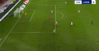 第14分钟,刘若钒禁区右路抽射,皮球擦柱而出。
